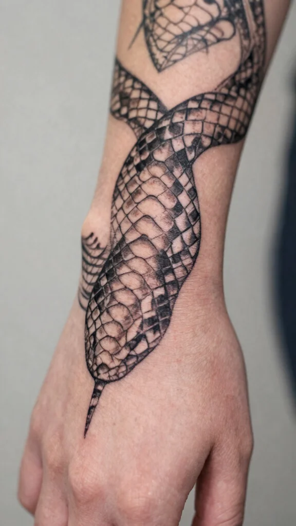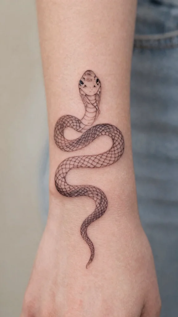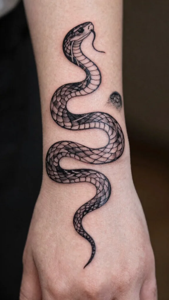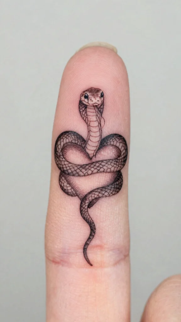 Consider placing this tattoo on the side of your finger or integrating it into a larger hand piece. Mixing geometric elements with traditional snake features can also create an avant-garde vibe that’s eye-catching. Discuss line thickness with your tattoo artist to ensure clarity and impact.