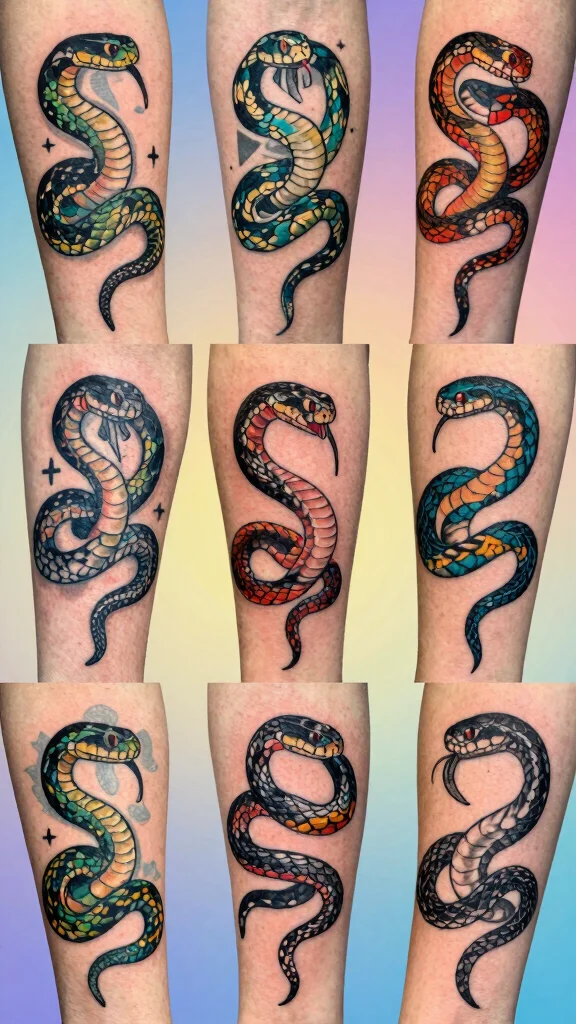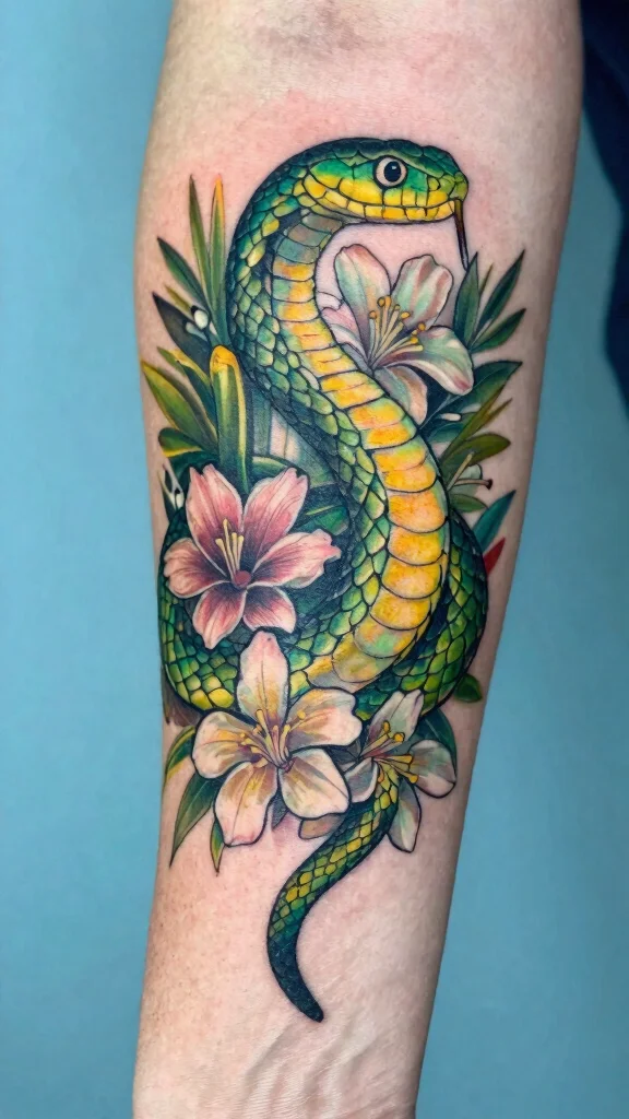 Choosing the right artist is key for a stunning snake tattoo color piece. Review portfolios that showcase vibrant color work and clean line shading in colorful snake tattoos. Look for artists who demonstrate strong color theory (how hues blend and contrast) and who can plan multi-session work without compromising line work. Ask about ink brands they prefer, touch-up policies, and aftercare guidance to protect the longevity of vibrant tattoo designs. Have a clear idea of your palette and let them adapt it to your skin tone for a result that feels uniquely you and beautifully artistic snake tattoos.