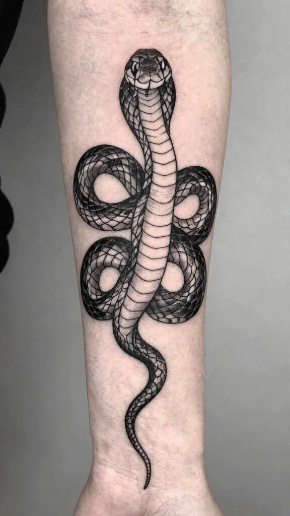 A black and white snake tattoo offers a timeless appeal that embraces elegance and simplicity. This design allows the intricate details of the snake to shine, making a powerful statement. The monochrome palette can convey strength and sophistication, appealing to those who appreciate classic art forms.