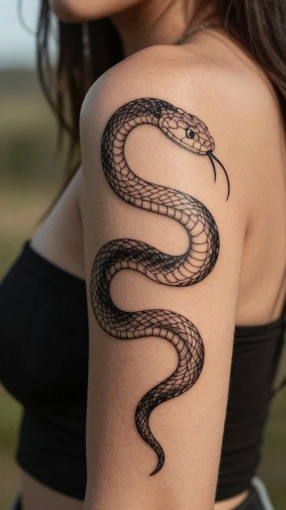 Tribal designs carry deep meanings, often related to cultural heritage. A tribal snake tattoo can symbolize protection and strength, featuring bold lines and shapes that convey raw energy. These tattoos are typically larger, making them an excellent choice for placements on your back or chest. They stand out with striking contrast, often inviting conversations about their significance, perfect for women who value their roots and warrior spirit.