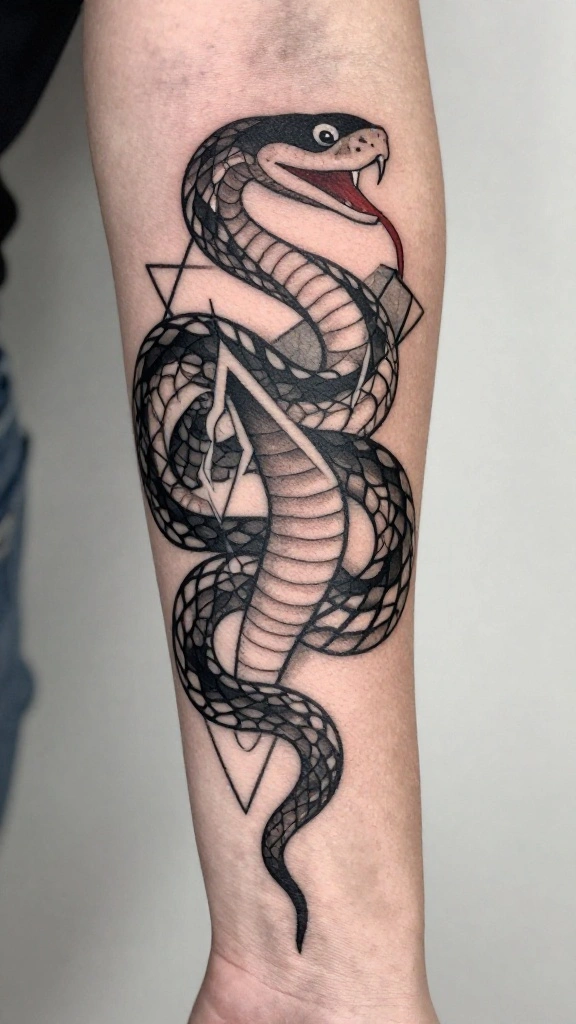 Work with your tattoo artist to explore various geometric options that complement the snake. Choose colors that enhance the shapes without overpowering the design.