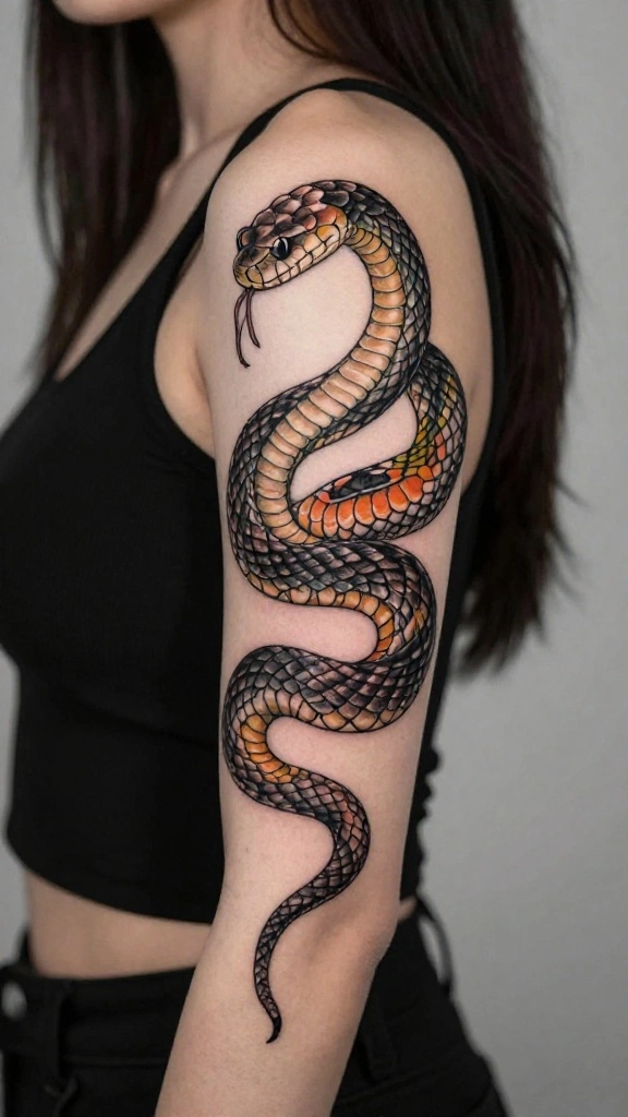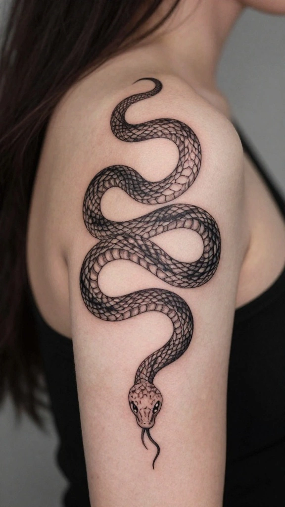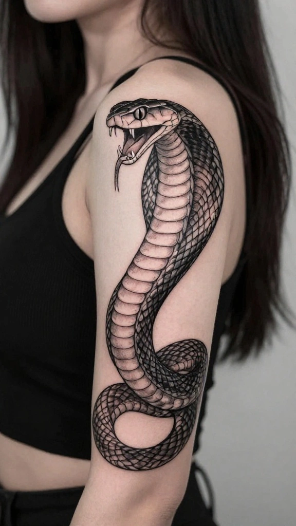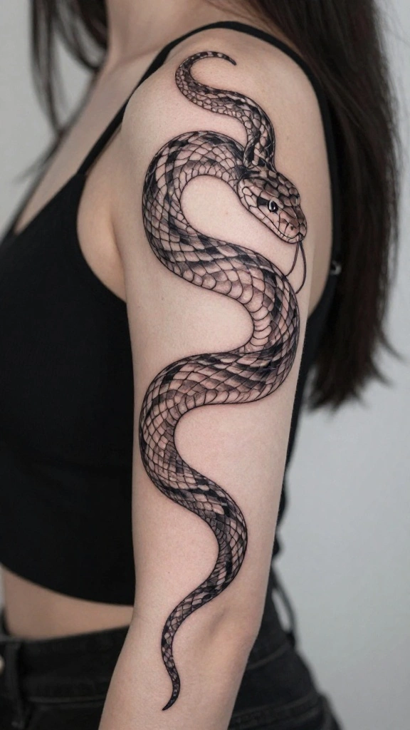 Trends include minimalist fine-line snakes, negative-space coils, and pairing with florals or geometric shapes. For women’s tattoo trends, consider a tiny head peeking from a sleeve, or a line-art snake along the collarbone. To customize: gather 3–5 reference images, discuss scale and placement, and ask for a snake tattoo designs for women that blends elegance with a touch of fierceness. You can also add color accents or a subtle shading gradient to reflect fierce tattoo designs.