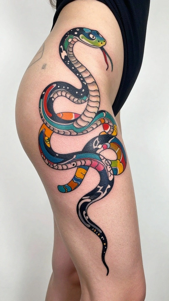 Choose a placement that allows for a longer design, such as your forearm or thigh. Consider using soft colors or shaded designs to enhance the python’s elegance.