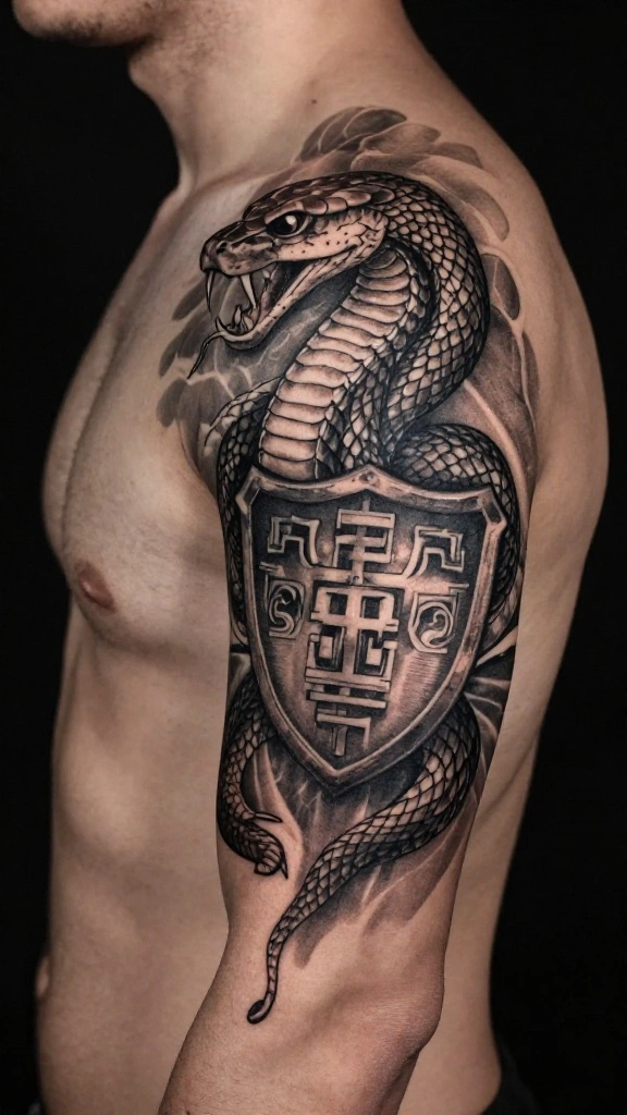 A tattoo depicting a snake as a protector emphasizes the cultural view of snakes as guardians. This design often showcases the snake coiled around a protective symbol, like a shield or shrine, embodying the spirit of safeguarding.These tattoos feature dynamic movement and symbolism that blend beautifully. The coiled shape creates a striking visual, representing readiness to defend and protect. This design resonates with those who value security and the strength found in nurturing relationships.Consider these design tips: