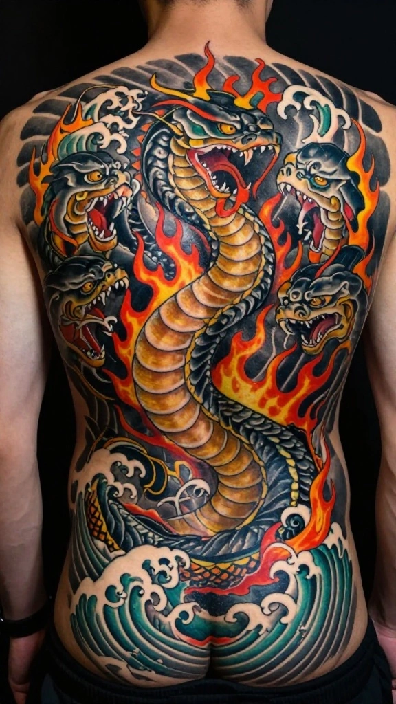 Yamata no Orochi isn’t just art—it’s a story you wear. For a snake tattoo japan piece, lean into eight serpent heads and fiery highlights, then anchor the tale with Susanoo’s bravery to remind yourself of resilience every day.