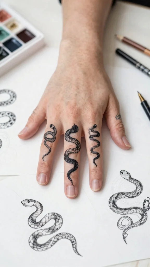 Finger tattoos are often small, so think about how big you want your snake tattoo to be. A larger design might stretch across multiple fingers, while a smaller one will be more subtle. Measure your fingers to visualize where the tattoo will fit best. Remember, smaller tattoos can still make a bold statement!