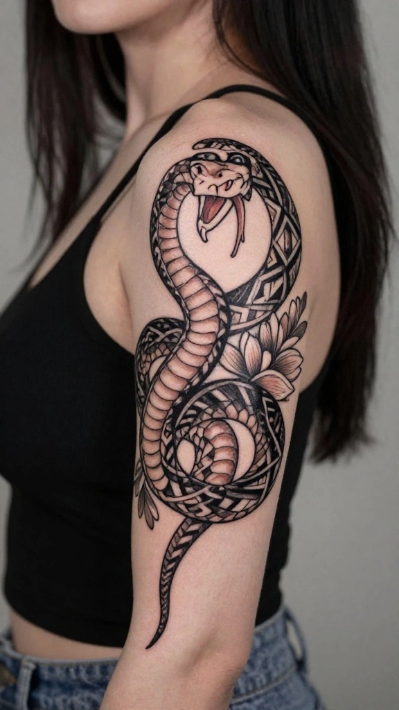 From delicate floral elements intertwining with serpents to modern minimalist styles, this post will give you a range of ideas that are not only striking but also meaningful. You’ll get insight into the symbolism behind each design and how these tattoos can be a symbol of strength and beauty. Let’s dive in!
