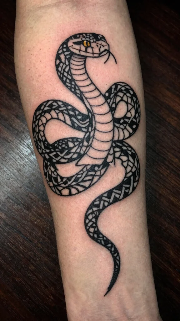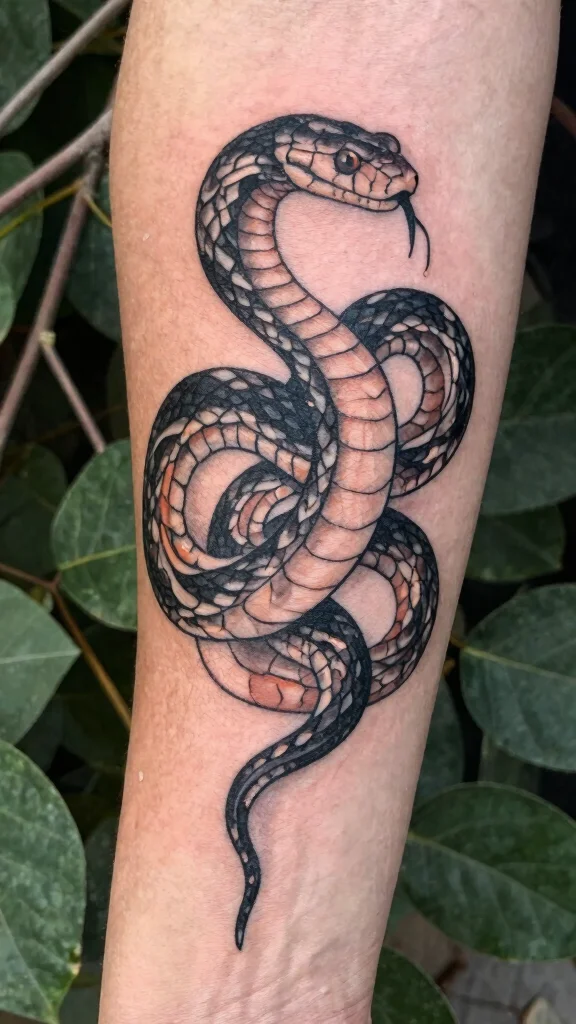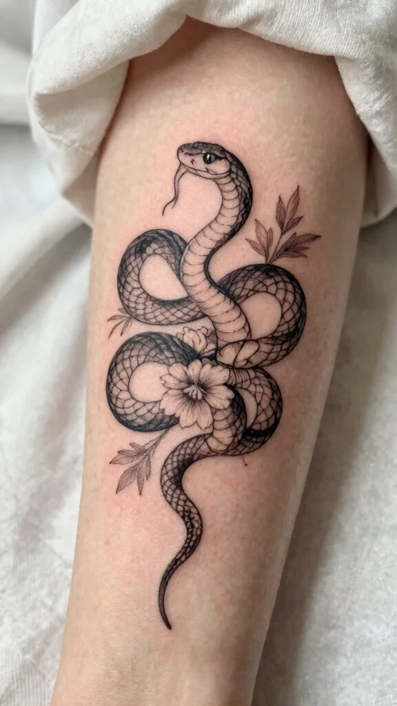 When applying this design, forearms or calves are ideal placements, allowing the snake’s curves to align beautifully with your body’s natural lines. This tattoo is not just an aesthetic choice; it often sparks conversations, inviting the wearer to share the deeper meanings behind their ink.