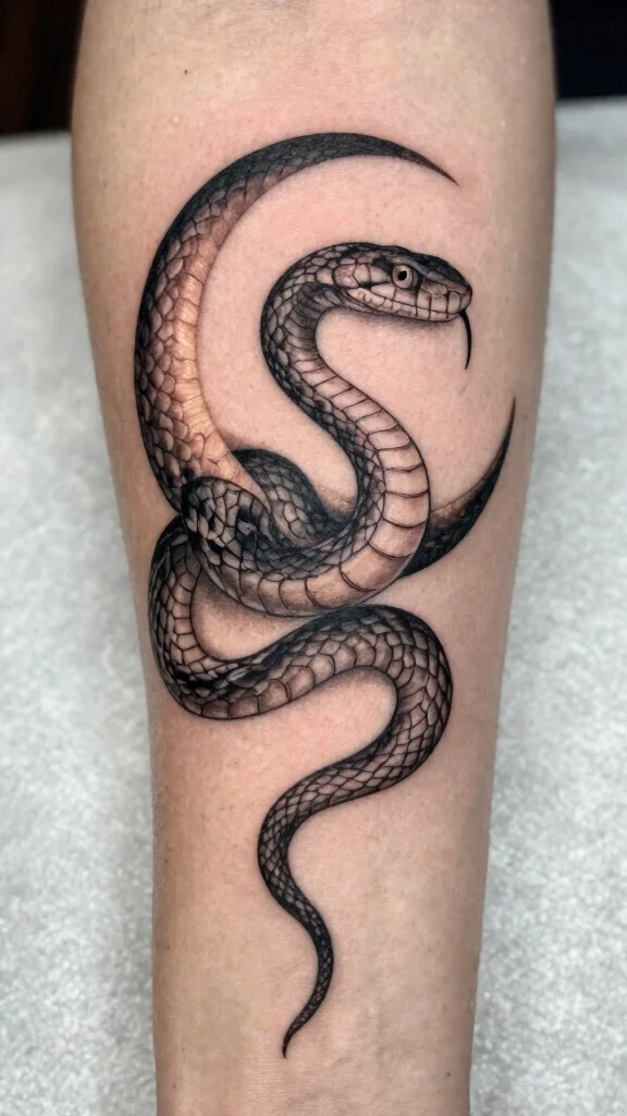 Ideal placements include the forearm or back, allowing the crescent to beautifully complement the snake’s curves. This tattoo goes beyond mere decoration; it serves as a reflection of your inner self.