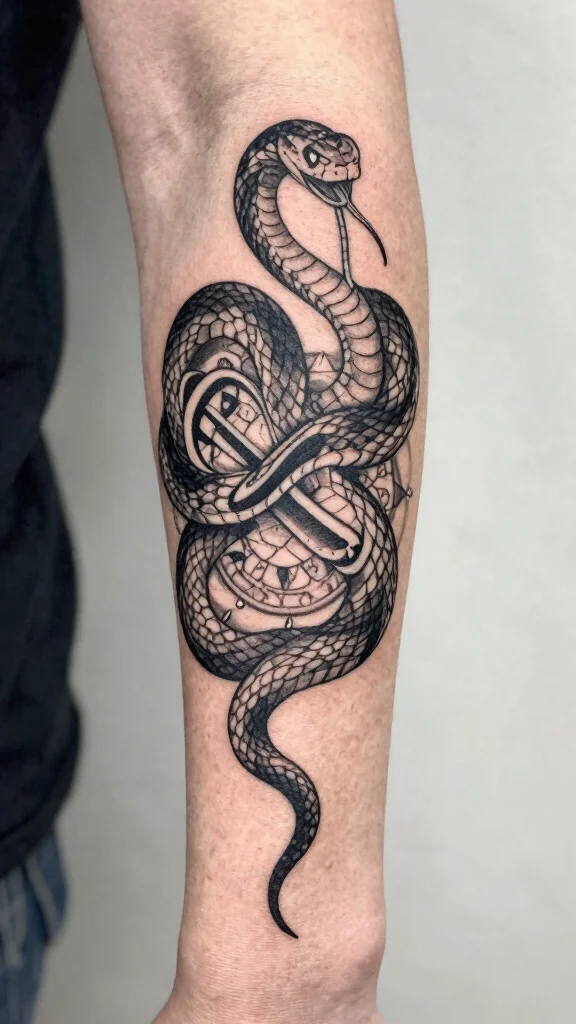 Styling your minimalist snake forearm tattoo can be easy with the right plan. Consider keeping it as a standalone piece or as part of a larger forearm tattoo ideas sleeve, pairing with other snake tattoo designs or simple geometric shapes. Negative space accents and tiny dotwork can complement the snake without stealing focus, resulting in a cohesive serpent body art look that feels trendy snake ink.