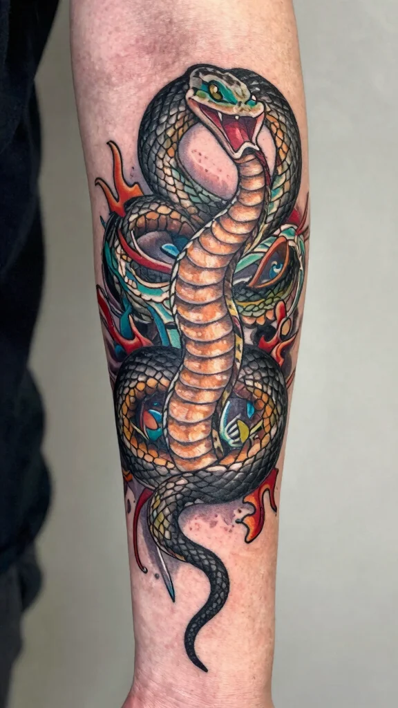 Portrait tattoos often require more space but can be designed to follow the natural curves of your forearm. A snake portrait can symbolize wisdom and strength, perfect for wearers who want to make a bold statement.