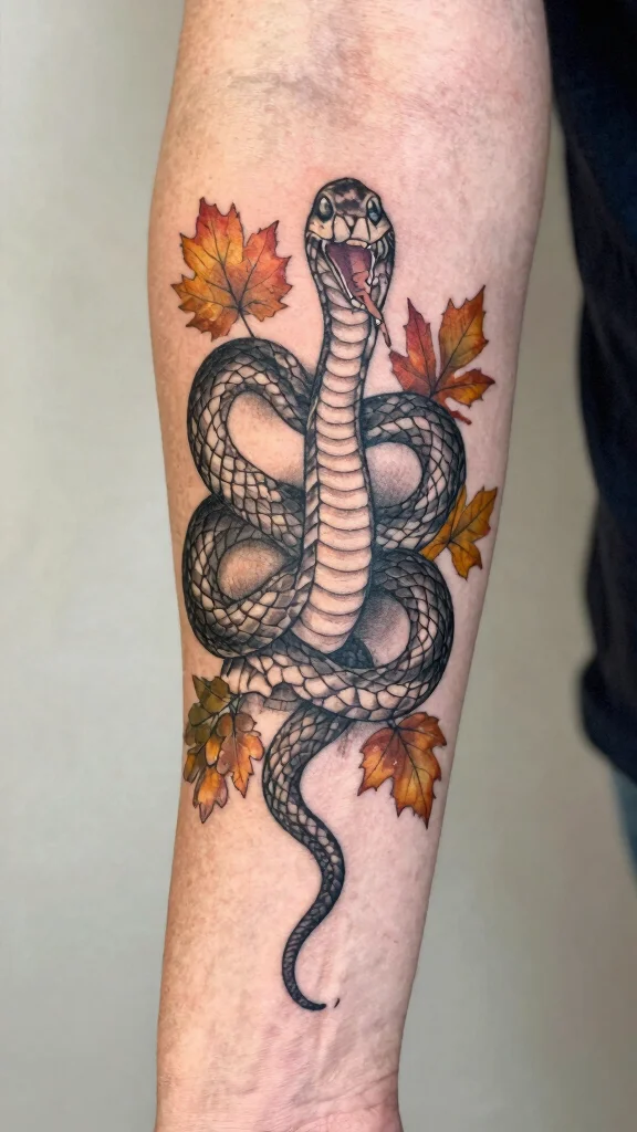 Seasonal snakes represent different stages of life or align with personal significance related to various seasons. For example, a snake intertwined with autumn leaves symbolizes change and letting go, while one surrounded by spring flowers represents renewal and growth.