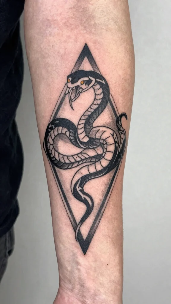 Consider geometric snake designs to add a modern and edgy twist to your forearm tattoo.