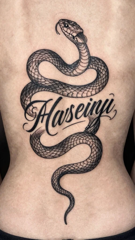 Incorporating script into a snake tattoo adds a personal touch, whether it’s a mantra, name, or date. The snake can elegantly coil around the text, creating a harmonious blend of design and meaning. Choosing elegant fonts and thoughtful placement can make this tattoo not only beautiful but also a cherished reminder of what matters most.