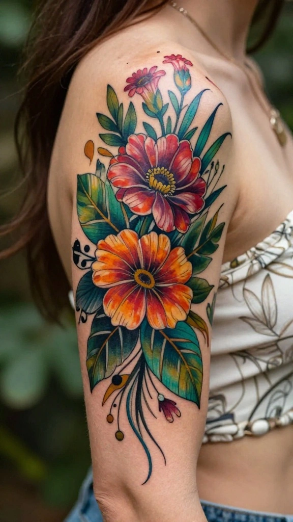 When contemplating a botanical tattoo, consider which plants or flowers resonate with you most. Colors play an essential role in conveying emotions, so choose shades that reflect your feelings. Enhance your design with these suggestions: