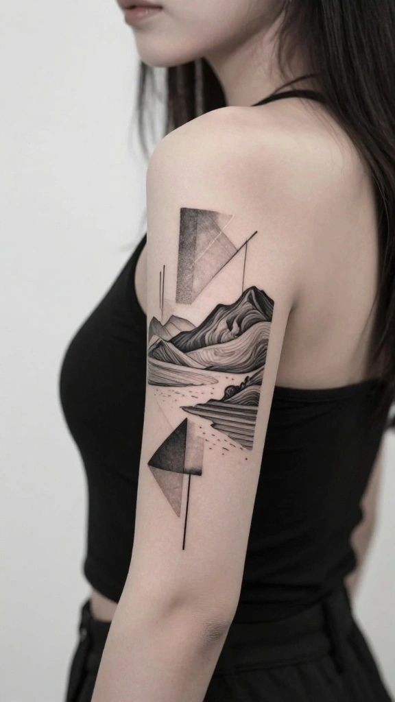 As you choose geometric designs, think about how the shapes can complement your body’s natural curves. Black and gray offer a timeless aesthetic, while color can make a bold statement. Keep these pointers in mind: