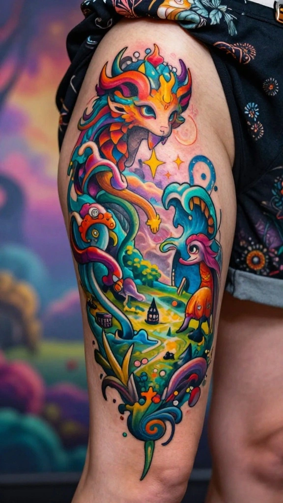On your thigh, whimsical designs can help create a captivating visual narrative. To embark on this magical tattoo journey, consider: