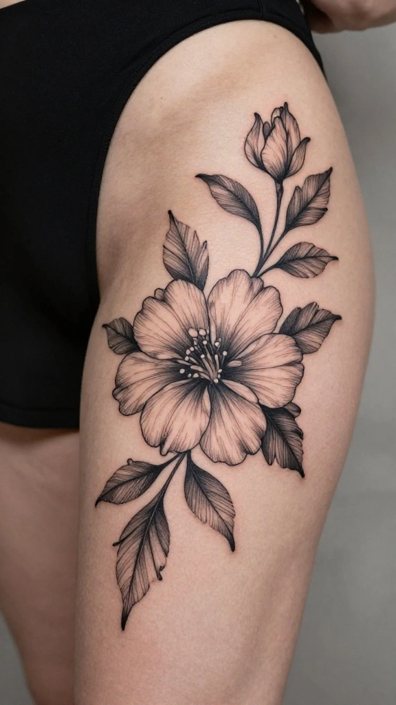 If you’re drawn to floral designs, consider how blackwork can elevate them to a whole new level. An elegant floral silhouette wrapping around your thigh symbolizes both beauty and strength. The delicate lines contrast beautifully against your skin, while the bold black ink adds a contemporary flair. This fusion of softness and power appeals to those who want their body art to express both femininity and resilience.
