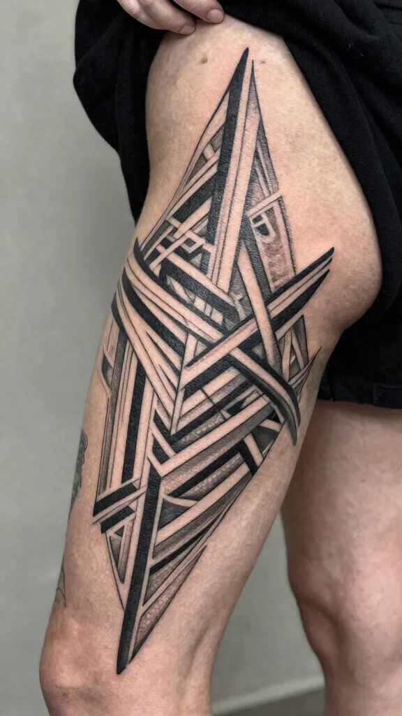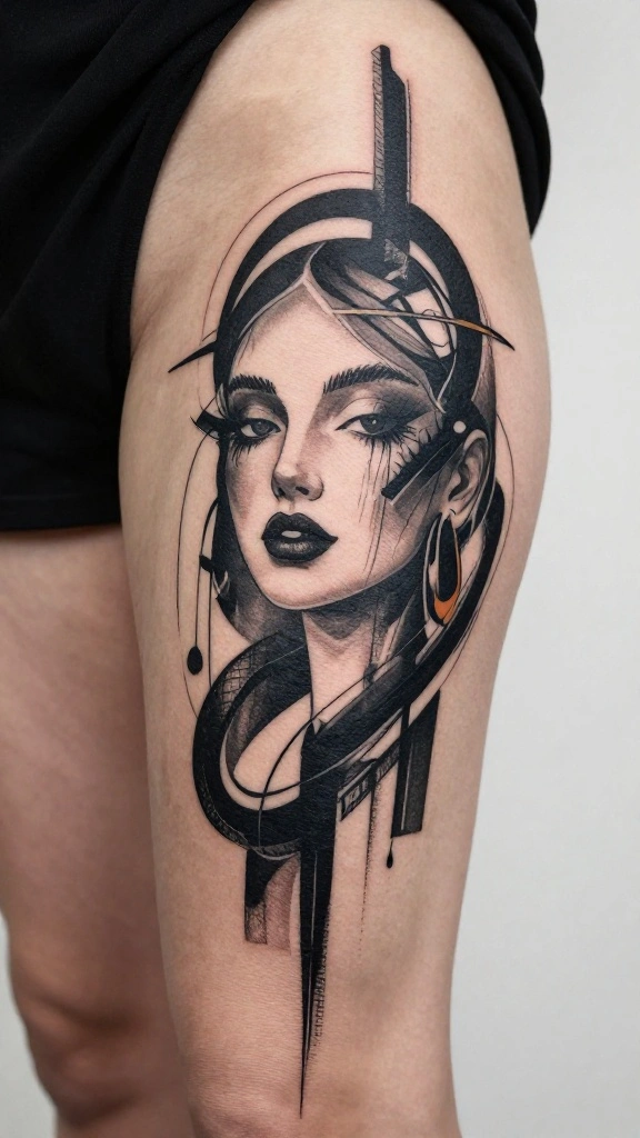 – Best for: Individuals looking for a contemporary edge to their thigh ink.