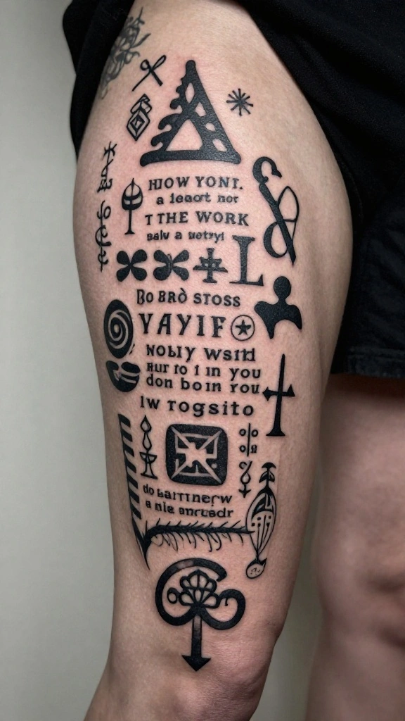 Personal symbols can turn a thigh tattoo into a deeply meaningful piece of art. Whether it’s your favorite animal, astrological sign, or a cherished object, blackwork can create a powerful visual statement. These tattoos often serve as reminders of your journey, aspirations, or beliefs.