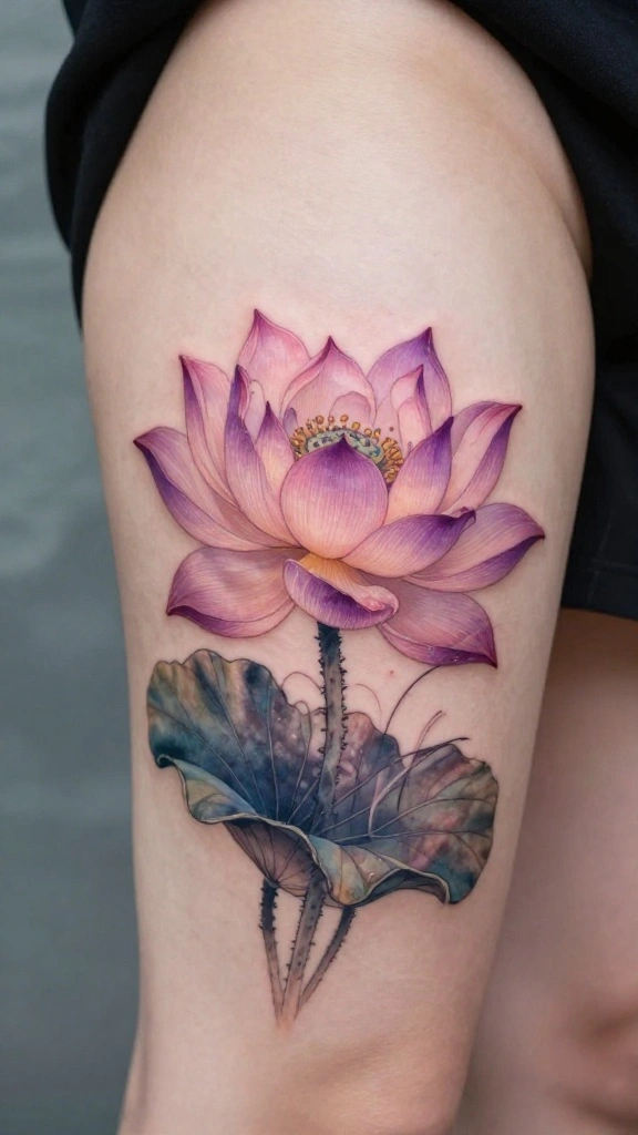 Fun fact: Lotus tattoos have surged by 28% in the ‘dark feminine’ thigh tattoo niche, symbolizing resilience as much as beauty. A single lotus can pair with water or mandala motifs to create a calm, powerful statement you can wear daily.