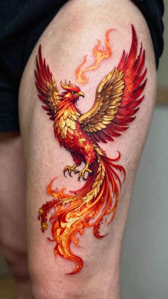 – Artistic Expression: Embrace the beauty of mythological creatures and symbols, transforming your thigh into a canvas that tells a powerful story.