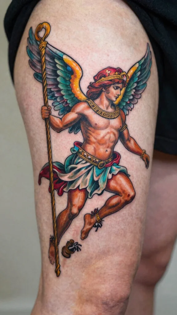 Hermes, the clever messenger god, is an excellent choice for thigh tattoos that reflect adventure and communication. Often depicted with wings and charm, a Hermes tattoo embodies the spirit of the trickster, perfect for those who value creativity and connection. You can enhance your design with elements like his caduceus or winged sandals for added storytelling.