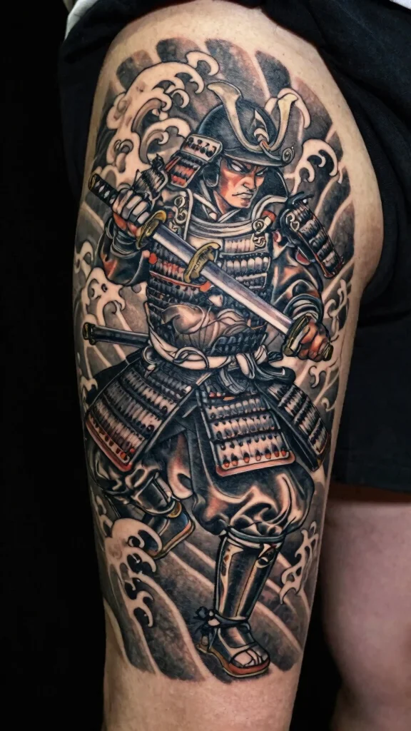 This tattoo not only captivates visually but also embodies the values of honor and courage, making a powerful statement.
