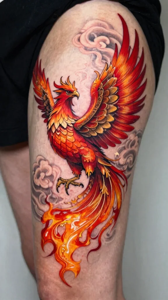 This tattoo not only looks breathtaking on the thigh but also tells a story of resilience and hope.