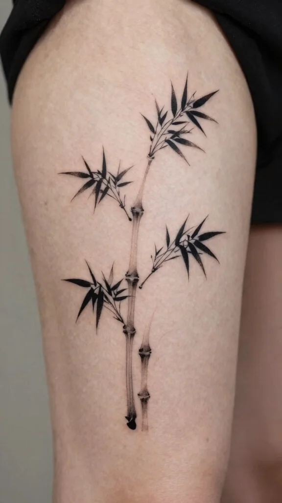Bamboo tattoos embody resilience, flexibility, and perseverance—qualities highly valued in Japanese culture. A thigh tattoo featuring bamboo can be a subtle yet powerful choice, capturing strength and grace simultaneously. Often depicted in a minimalist style, bamboo tattoos highlight clean lines and simple elegance.