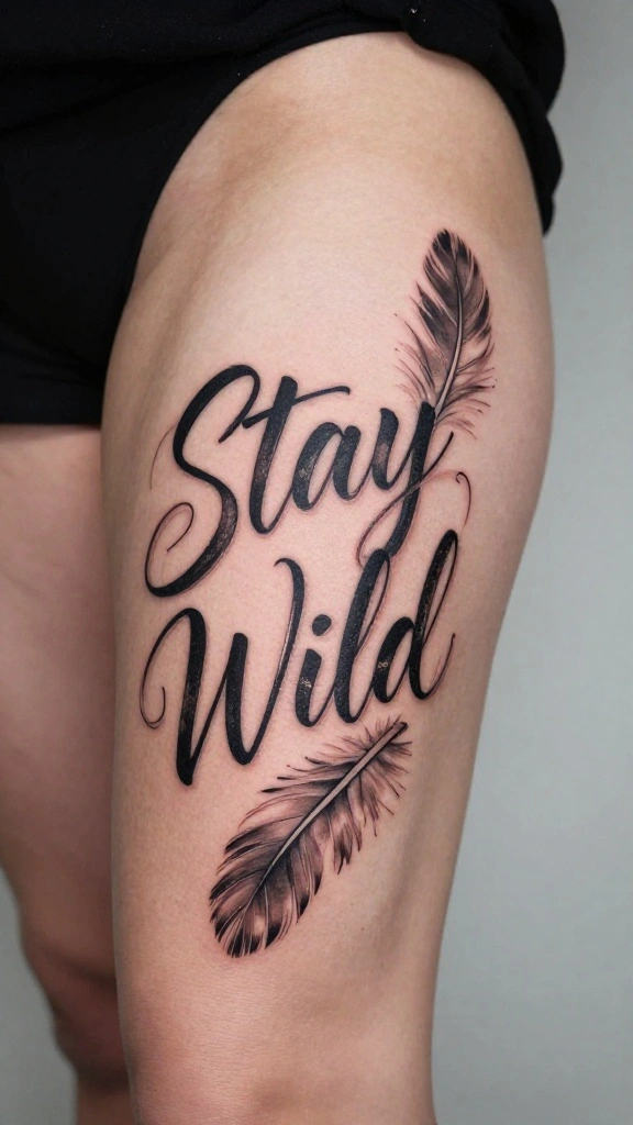 Consider complementing the text with elements like feathers or arrows, enhancing its wild theme. Placement is crucial; this tattoo can be revealed under shorts or dresses, expressing your free spirit whenever you choose.