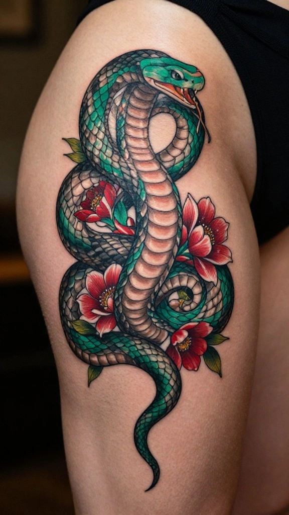 Snakes carry various meanings across cultures, from transformation to healing. Reflect on what the snake symbolizes for you. This personal connection can add depth to your tattoo choice. You might want to incorporate additional elements like flowers or celestial bodies, which can enhance the overall message of your tattoo.