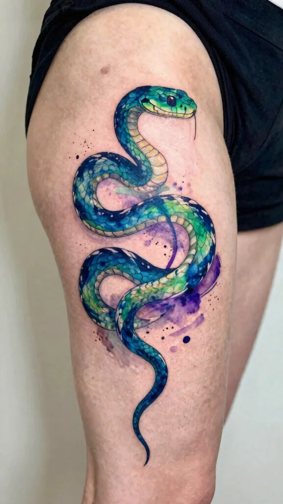 To create a breathtaking watercolor snake tattoo, consider: