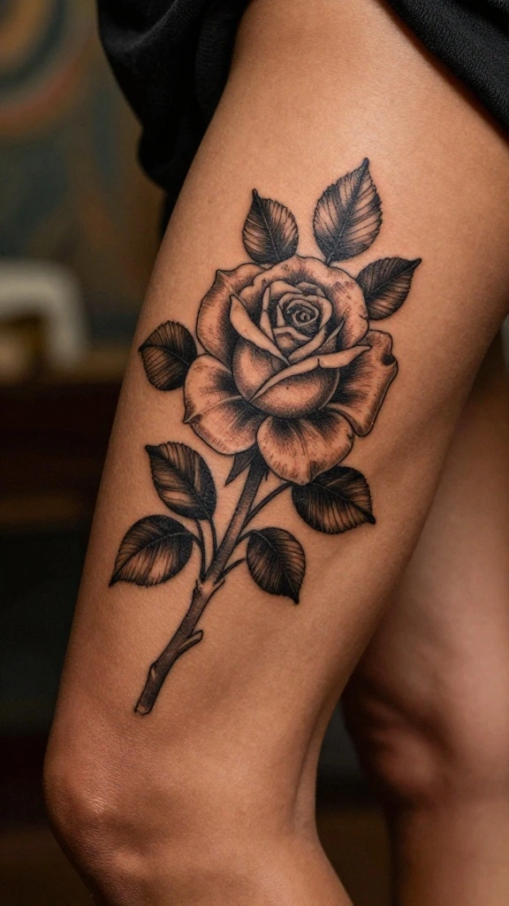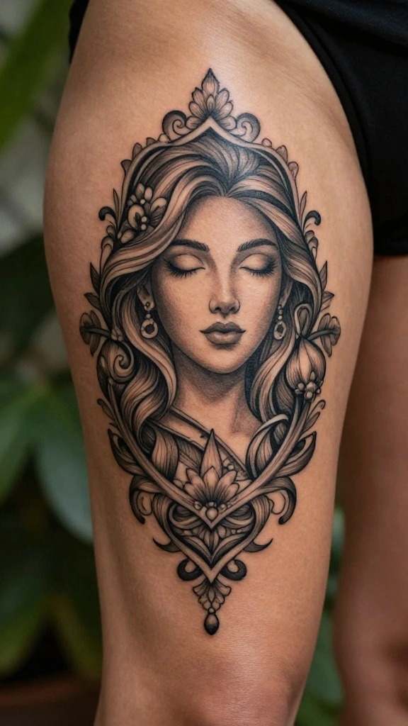 The thigh provides ample space for intricate designs, encouraging creativity and depth in your artwork. By thoughtfully combining elements, you can create a masterpiece that resonates with you on several levels.