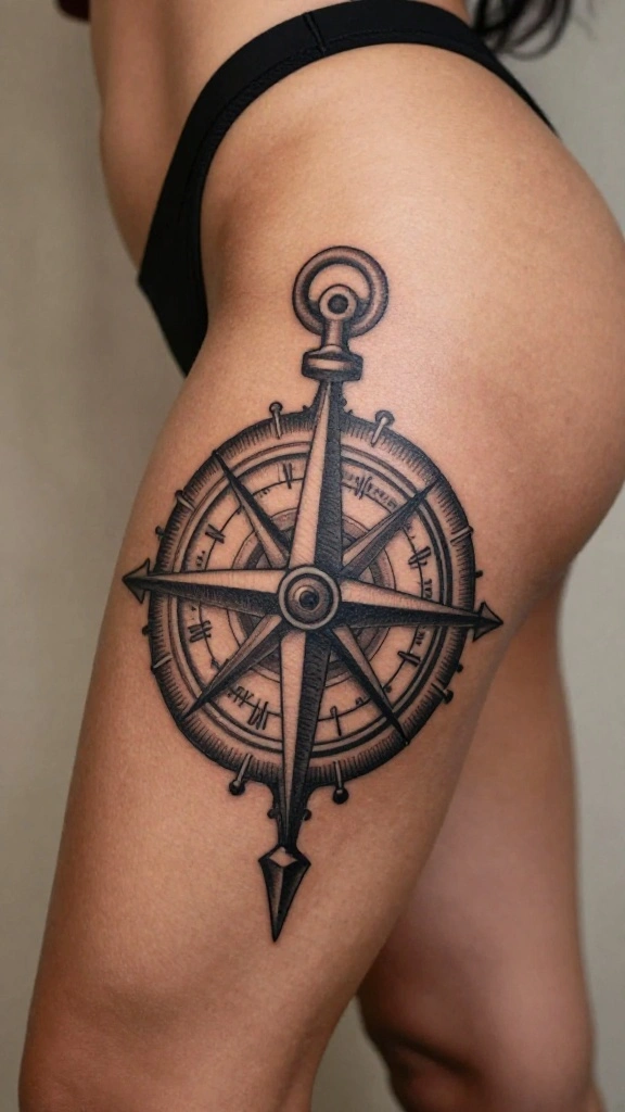 Symbolic tattoos incorporate meaningful icons, making profound choices for thigh art. Whether it’s a compass, anchor, or heart, these symbols can convey messages about direction, love, or stability. The size can vary, from small to large pieces, allowing for intricate details or minimalist styles.