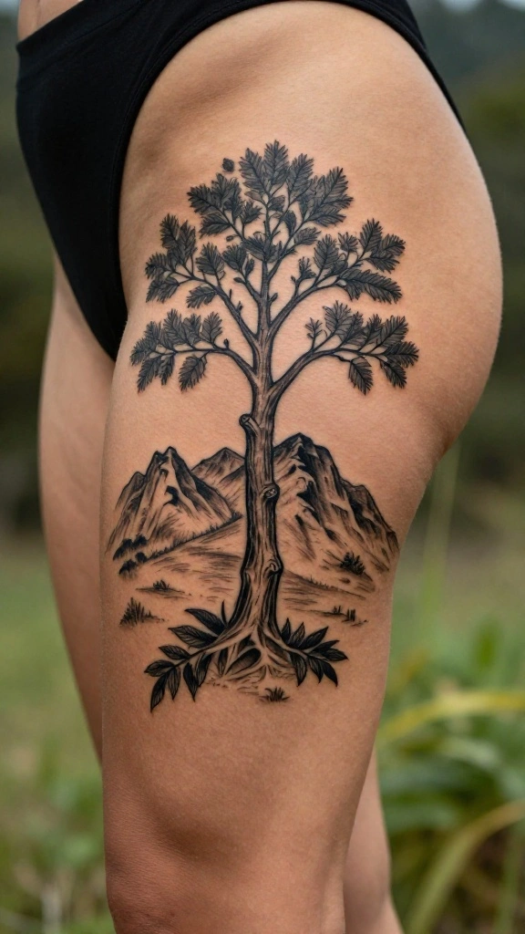 Family tree tattoos symbolize a deep connection to your roots and loved ones. These designs can beautifully honor family history, incorporating names or symbols that represent lineage. Positioned on the thigh, these tattoos serve as significant reminders of where you come from.