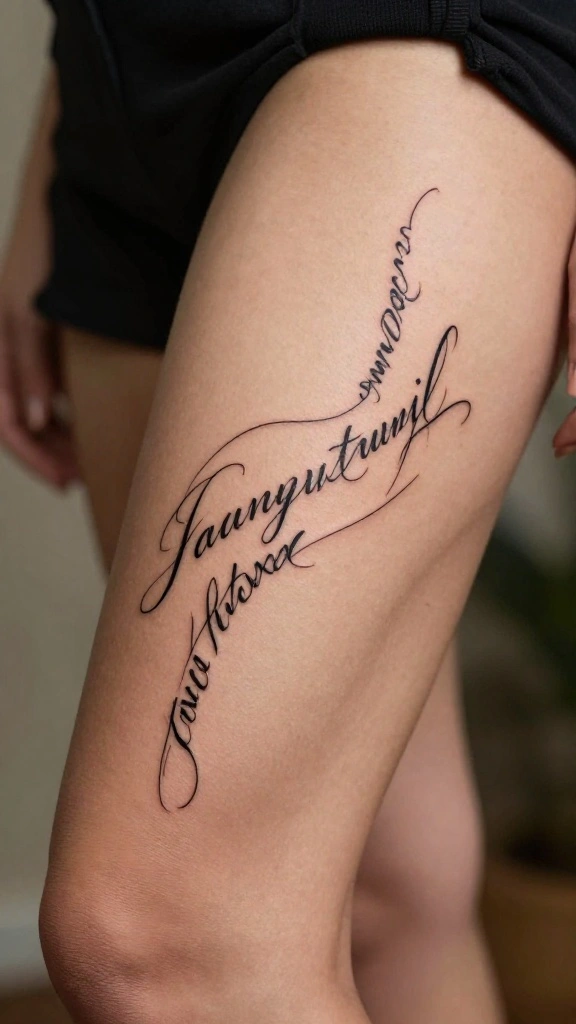 Script and quote tattoos are a wonderful way to express meaningful phrases that resonate with you. Placing a quote along the thigh creates an elegant flow that is both aesthetically pleasing and inspiring. Choosing a phrase that reflects your values can transform this tattoo into a deeply personal statement.