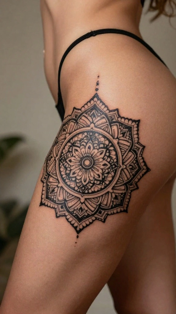 Mandala tattoos are intricate circular designs that symbolize unity and balance. These tattoos are not only visually stunning but can also carry deep spiritual meanings. A mandala on your thigh creates a striking focal point, drawing admiration while reflecting your personal journey.