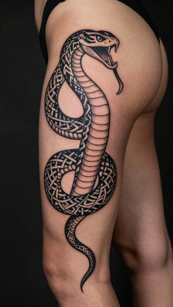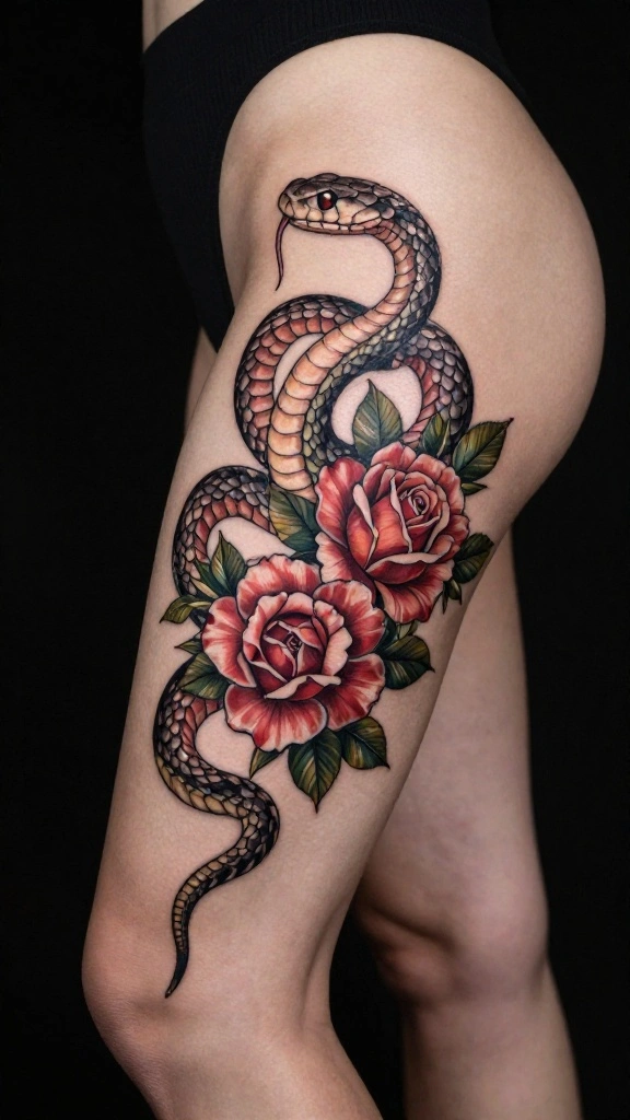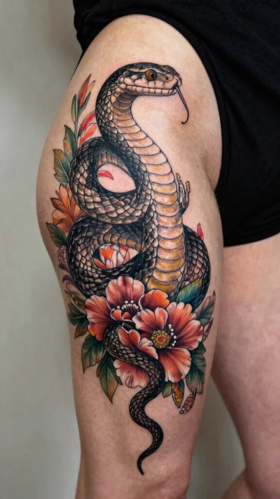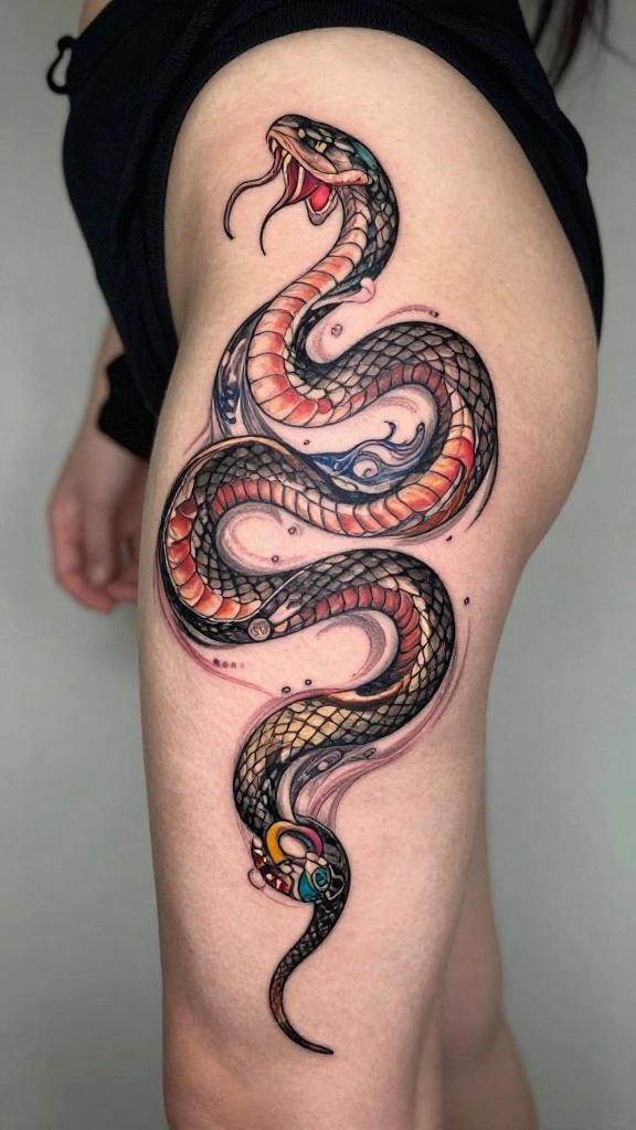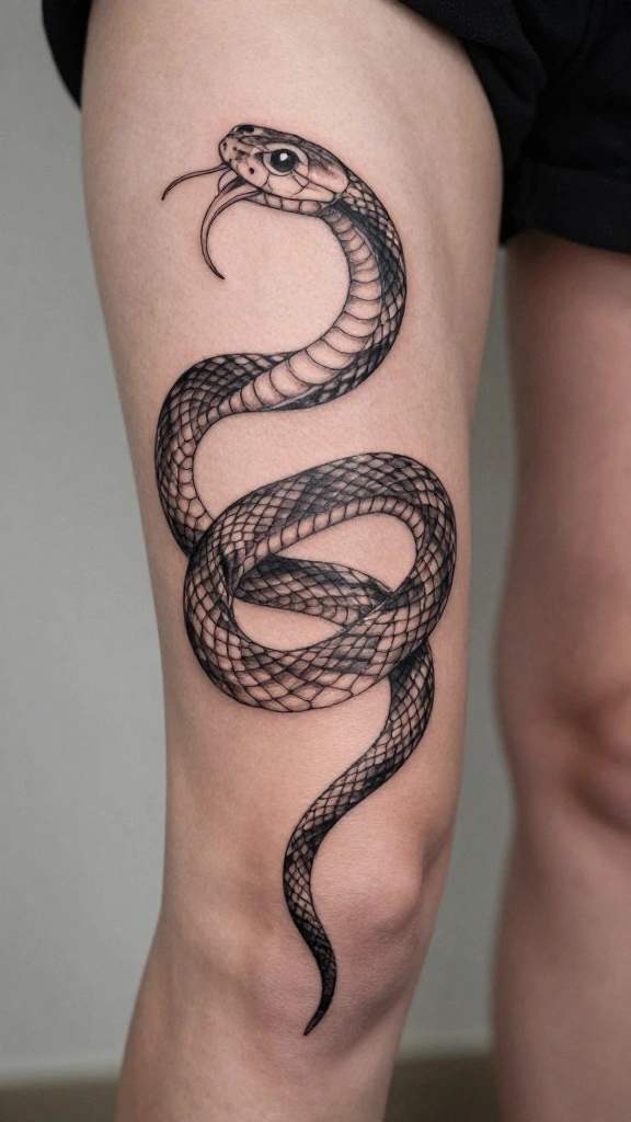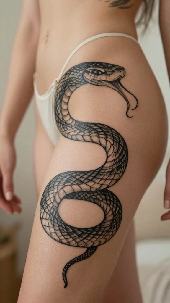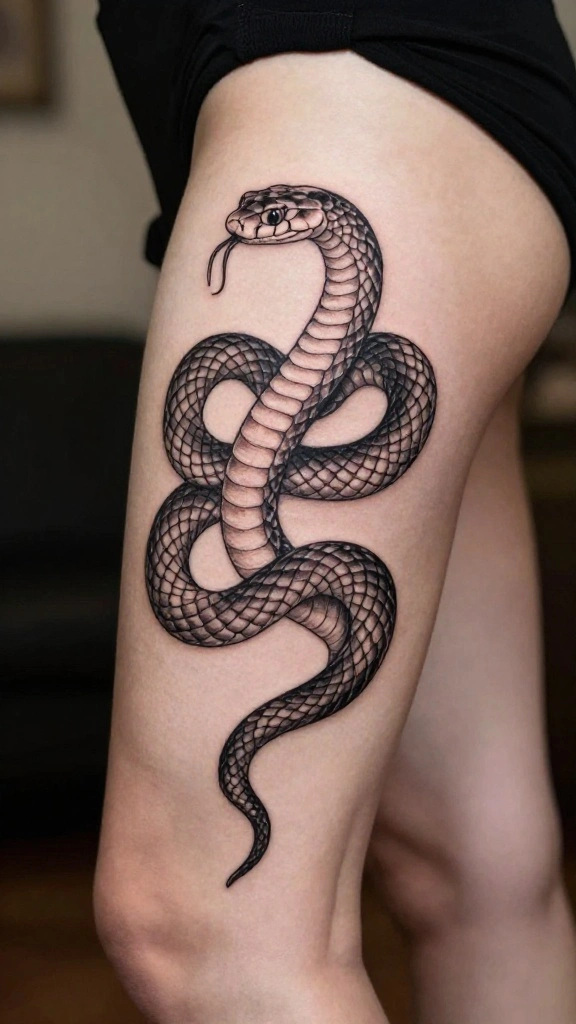 Choosing a thigh tattoo, especially one featuring a snake, is highly personal and symbolic.