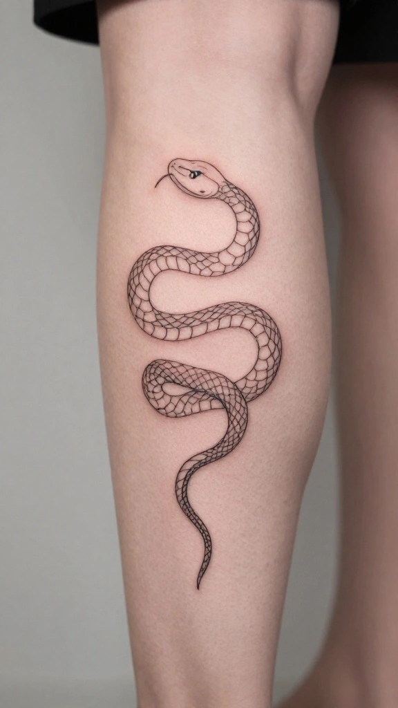 Consider elongating the snake to follow the natural curve of your thigh for a graceful touch. Ensure the lines are well-defined to maintain the minimalist appeal while capturing attention.