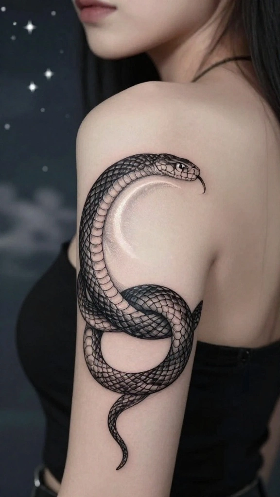 The snake and moon tattoo is a mystical design that evokes a sense of enchantment and connection to nature. This piece often features a snake encircling a crescent moon, symbolizing cycles, change, and feminine energy. It’s ideal for women who feel drawn to the allure of the night sky and lunar energy.