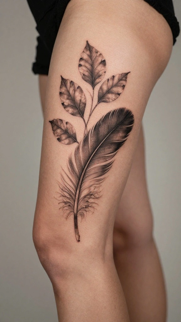 Incorporating nature-inspired elements into a thigh tattoo brings an earthy, tranquil feel. This could include leaves, feathers, or more complex designs featuring scenes from the outdoors. Women are often drawn to these tattoos as a reflection of their love for nature and the peace it brings.