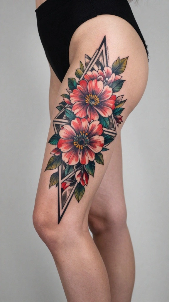 The geometric aspect adds a unique layer of symbolism, representing structure and order alongside the organic beauty of flowers. This fusion creates a deeply personal and visually captivating design.