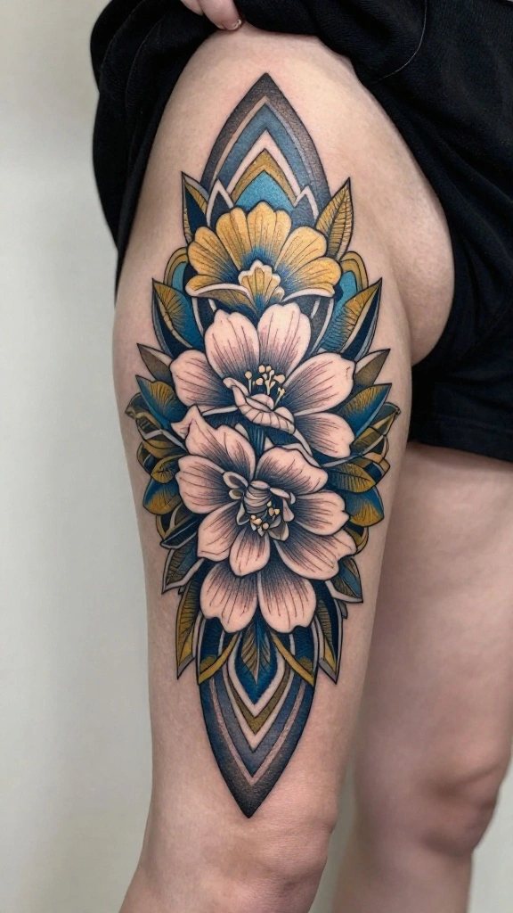 Thigh tattoos are a fantastic way to express individuality, especially with the timeless appeal of traditional designs.