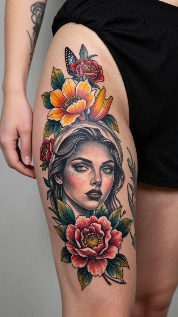 When it comes to body art, thigh tattoos for women stand out as a favorite choice for many. This post is inspired by the timeless elegance of traditional tattoo art, especially in the vintage floral theme. If you are considering a tattoo that reflects your personality while embodying classic artistry, you’re in the right place. Thigh tattoos are not only visually stunning but also allow for intricate designs that can be personal and meaningful.