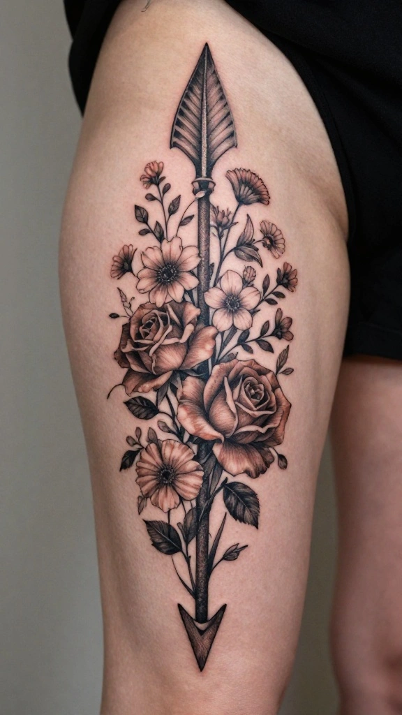 This tattoo is perfect for someone who values both strength and beauty. Adding meaningful dates or initials along the arrow can personalize the design.