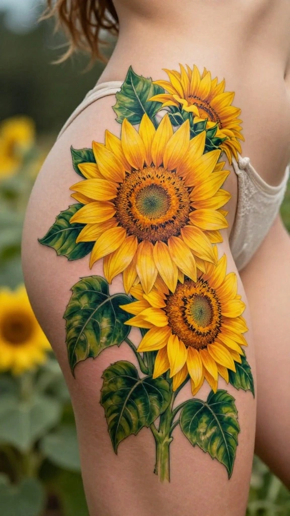Thigh tattoos offer a unique canvas for self-expression, especially with floral designs that flow beautifully around the leg.