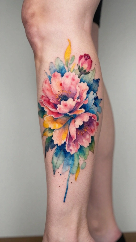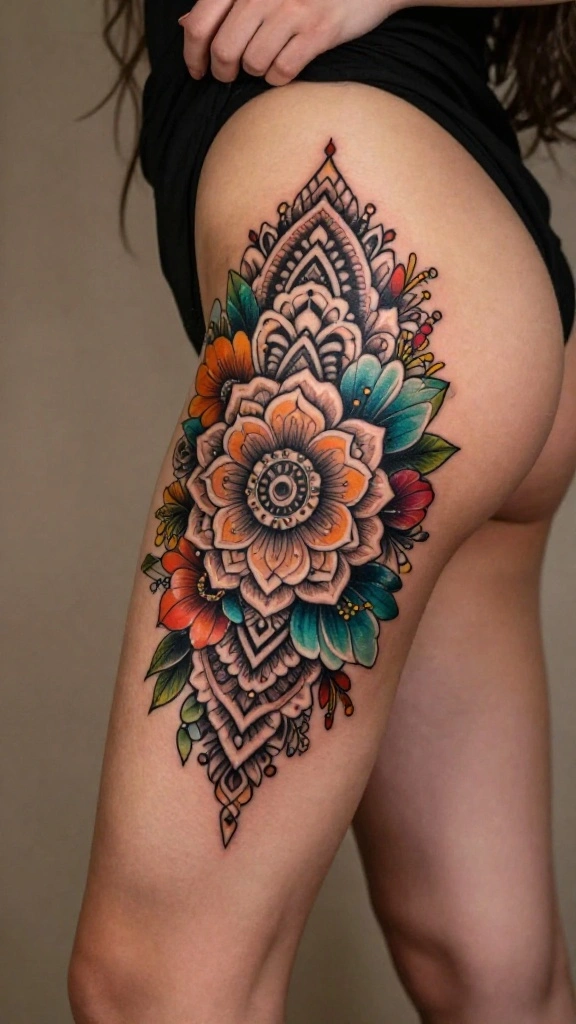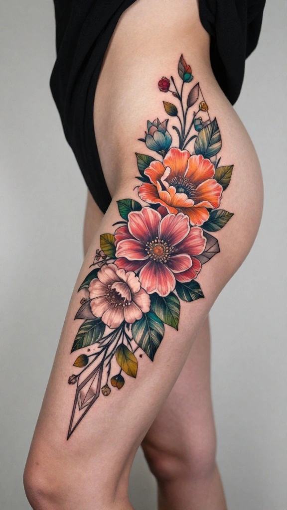 Incorporate watercolor styles for a vibrant, artistic look that enhances the flow of your thigh tattoo.