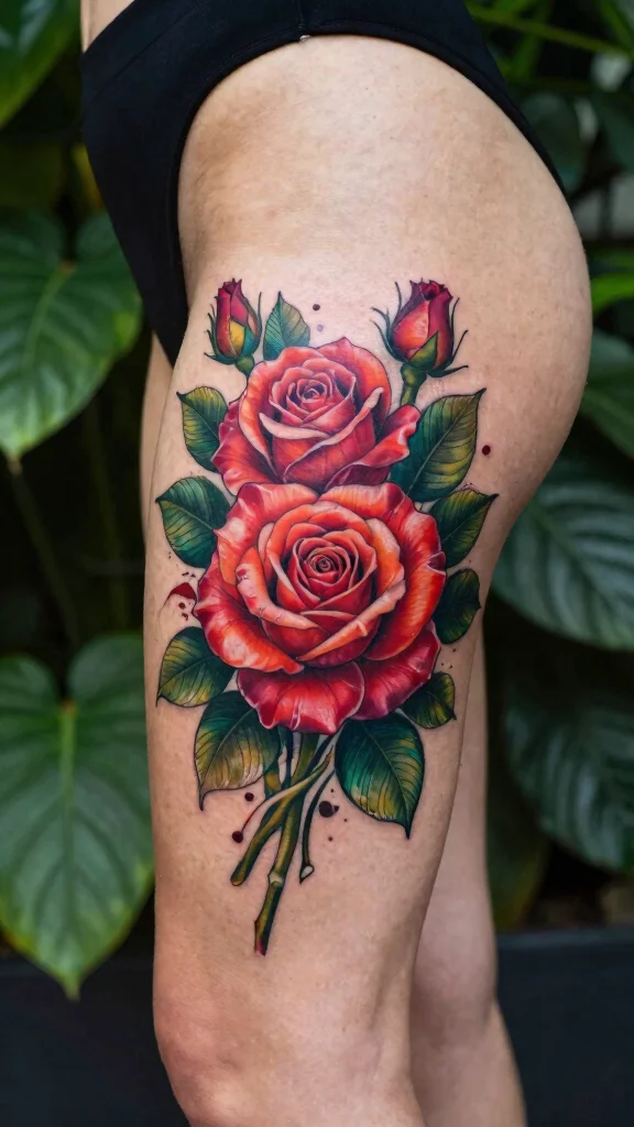 Imagine a rose bouquet wrapping around your thigh, accentuating your curves while creating a harmonious flow. You can choose classic red roses for a traditional look or vibrant hues to express your playful side. Adding leaves or small buds can enhance the freshness of the design.
