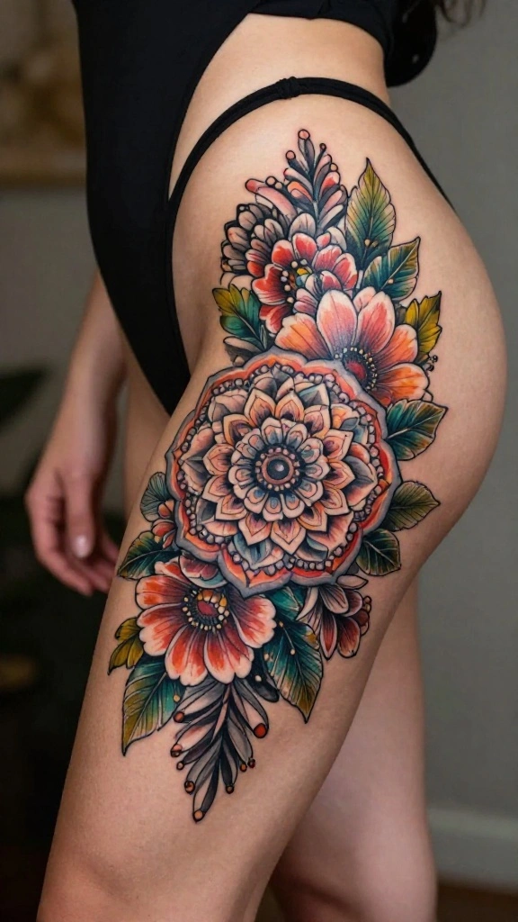 – Explore floral themes: Floral thigh tattoos are ideal for expressing femininity and personal style, offering a variety of designs to suit your taste.